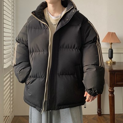 Fashionable, handsome, windproof, cold-resistant, warm, loose, large-size hooded cotton jacket for men