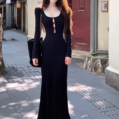 V-neck pleated trumpet sleeve ruffled white dress spring women's design fluffy skirt